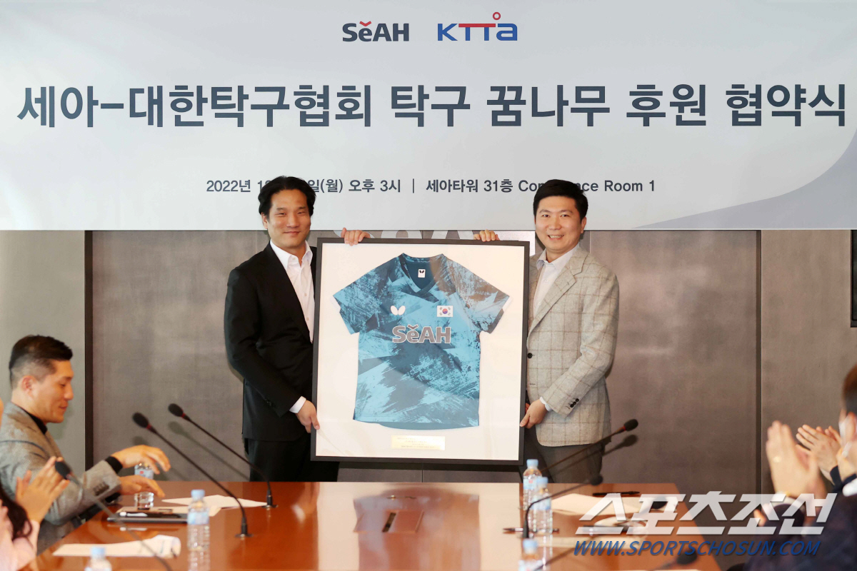 대한탁구협회와 세아그룹은 19일 서울 마포구 세아타워에서 탁구 꿈나무 후원협약식을 체결하고, 'KTTA 세아 아카데미' 로드맵을 발표했다.