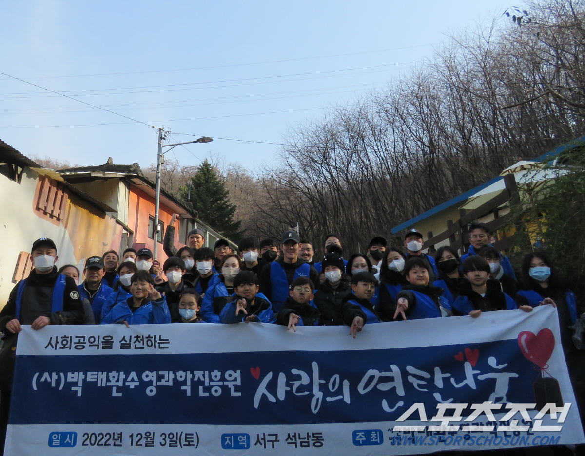 박태환은 지난 3일 박태환수영과학진흥원 직원, 회원들과 함께 오전 9시 인천 서구 석남동 절골마을에서 연탄나눔을 진행했다. 박태환은 지난 2019년 비영리사단법인 박태환 수영과학진흥원(이하 진흥원)을 설립한 이후 지역 사회의 뜻있는 기업인, 체육인들과 함께 소외계층 지원, 체육꿈나무 육성 및 장학금 지원, 선진수영 프로그램 보급을 진행해왔고, 연탄나눔은 이번이 3번째다.