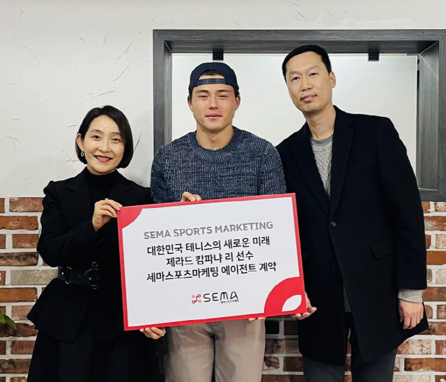 세마스포츠마케팅 홍미영 전무이사, 제라드 캄파냐 리 선수, 세마스포츠마케팅 오승언 부장(왼쪽부터).