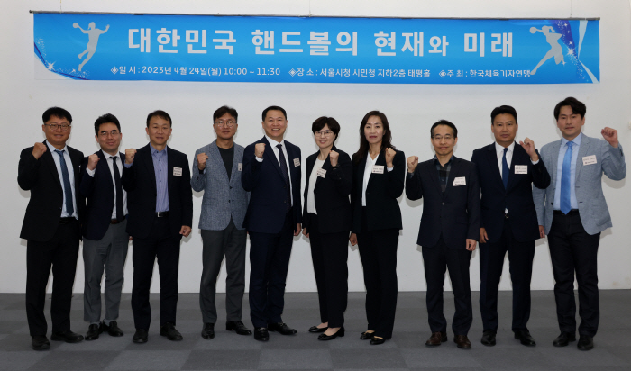 한국체육기자연맹(회장 양종구)이 한국 핸드볼의 현주소를 파악하고 발전적인 미래를 그리는 '대한민국 핸드볼의 현재와 미래' 세미나를 24일 서울 중구 서울시청 시민청에서 열었다. 핸드볼 전문가, 교수, 체육기자들이 한데 모였다.
