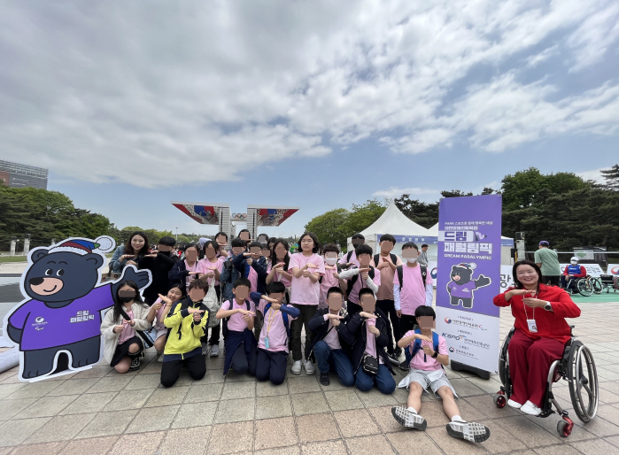 지난 21일 서울 송파구 올림픽공원 평화의문 광장, 정경희 장애인식 개선 강사(전 배드민턴 국가대표)의 제안에 아이들의 "네!" 높은 음자리표 함성이 울려퍼졌다. 정경희 강사의 지도에 따라 담임 선생님을 향해 양손으로 맷돌을 그리듯 '사랑해요' 수어를 하는 아이들의 만면에 미소가 흘러넘쳤다.