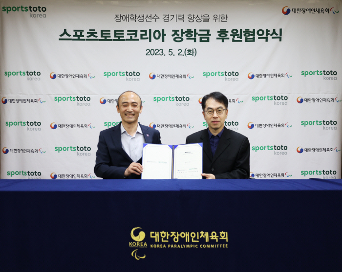 [스포츠조선 김진회 기자] 국민체육진흥공단이 발행하는 체육진흥투표권 스포츠토토의 수탁사업자 스포츠토토코리아가 2023년부터 2025년까지 장애학생선수들의 경기력 향상 지원 및 사기 진작을 위해 대한장애인체육회에 총 3000만원의 장학금을 후원하기로 약속했다고 3일 밝혔다.