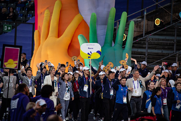 18일 저녁 독일 베를린 올림픽스타디움에서 190개국 7000여명이 옹기종기 모여 제16회 대회 개막식을 진행했다. 스페셜올림픽은 1968년 미국 시카고에서 초대 대회를 개최한 뒤, 2년마다 하계·동계 대회를 번갈아 열고 있다. 지난 2021년 카잔 동계대회가 러시아의 우크라이나 무력 침공 사태로 인해 취소되면서 이번 대회는 2019년 아부다비 하계 대회 이후 4년만에 열렸다.