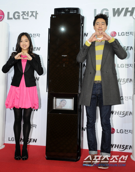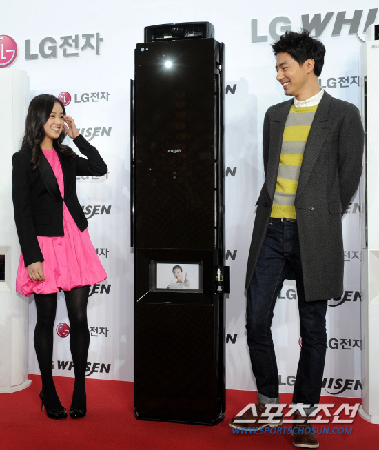 배우 조인성과 체조요정 손연재가 함께 CF에 출연한다. 4일 남산 반얀트리 클럽 앤 스파 서울에서 진행된 LG 에어컨 휘센 신제품 발표회에 참석한 조인성과 손연재가 포토타임을 갖고 있다. 허상욱 기자 wook@sportschosun.com/2012.01.04/