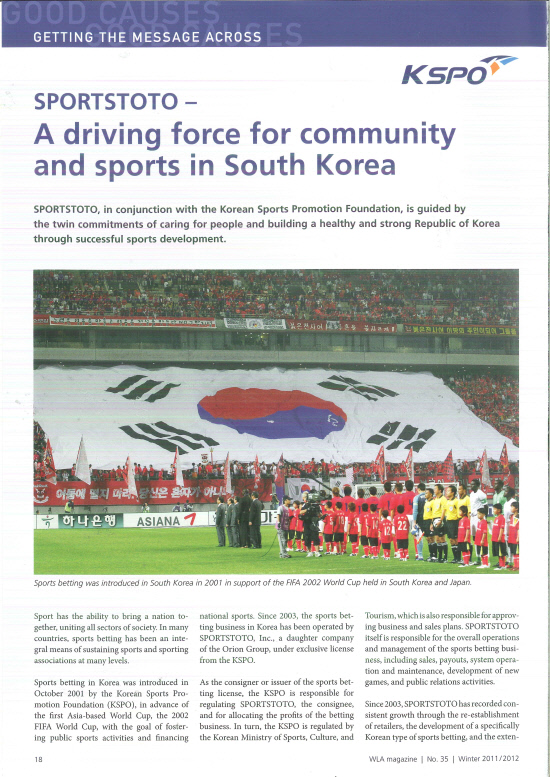 국민체육진흥공단과 스포츠토토가 세계 각국의 복권업체를 대표하는 정기간행물 'WLA 매거진'에 대서특필됐다.