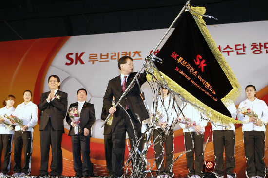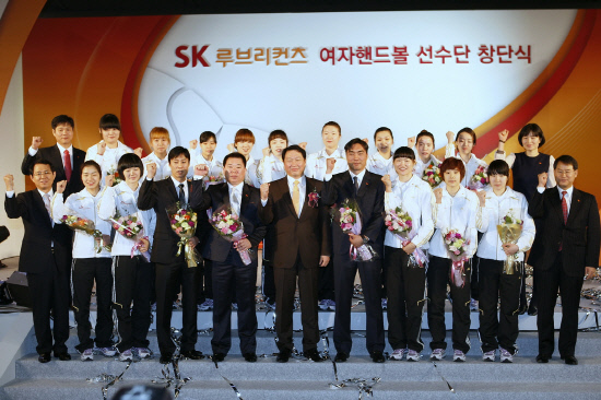 SK는 10일 서울 방이동 올림픽공원의 SK핸드볼전용경기장에서 창단식을 가졌다. 모기업 SK의 수장이자 대한핸드볼협회장인 최태원 회장을 비롯해 각계 인사 150여명이 참가해 새롭게 날개를 편 선수단을 축하했다. 최 회장은 "사실 루브리컨츠는 초창기만 해도 그룹 내에서 가장 실적이 좋지 않은 회사였다. 그러나 열정과 패기, 혁신을 바탕으로 해외 무대에 나서 가장 성공한 계열사 중 하나가 됐다"면서 새롭게 출발하는 SK의 성공을 기원했다.
