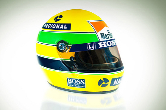 사망한 세나의 상징처럼 널리 알려져온 이 노란색 헬멧은 F1 3회 챔피언이 마지막으로 멕라렌에서 활약한 1993년에 세나가 착용했던 것이다.