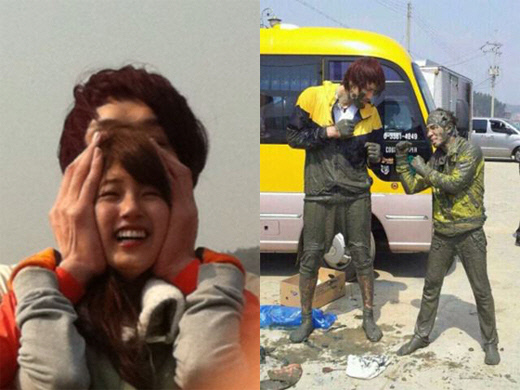 또 다른 사진에서 최홍만은 붐과 온 몸에 진흙을 묻힌 채 서로 주먹을 쥐고 노려보는 포즈를 취해 눈길을 끈다.
