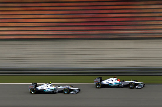 슈마허 역시 같은 팀 동료로 니코 로즈버그에 못지 않은 실력을 내고 있기 때문이다. 슈마허는 중국 그랑프리서 예선 3위로 결선 레이스에 나섰지만 12랩째 차량 정비 실수로 아쉽게도 리타이어했다.