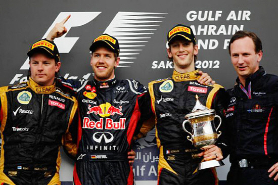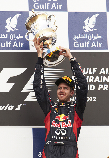 베텔은 22일(이하 현지시간) 바레인 사키르에서 열린 2012시즌 4라운드 그랑프리에서 5.412㎞의 서킷 57바퀴(총길이 308.238㎞)를 1위로 골인했다.