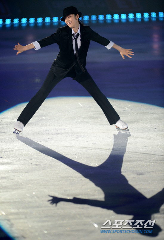 1부의 대미는 김연아가 장식했다. 예고대로 '남자'로 변신했다. 4명의 남자 스케이터와 함께 등장한 김연아는 화이트 슬리브리스 셔츠에 블랙 수트와 넥타이, 페도라로 남장여인을 연출했다. 마이클 부블레의 '올 오브 미(All of me)'에 맞춰 연기한 김연아는 특유의 표정 연기로 매력적인 무대를 만들었다. 고뇌하던 남자의 모습을 그린 김연아는 마지막에 재킷을 벗고 아름다운 여인의 모습으로 돌아오는 변신을 연기했다. 오랜만에 돌아온 '피겨 여왕'의 매혹적인 연기에 관중들은 기립박수로 화답했다.