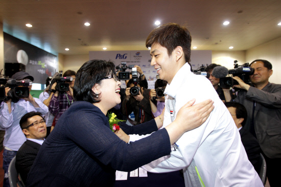 대한체육회와 한국 P&G가 공동으로 주최하는 'Thank you Mom(땡큐 맘)' 캠페인이 어버이 날인 8일 태릉선수촌에서 열렸다.