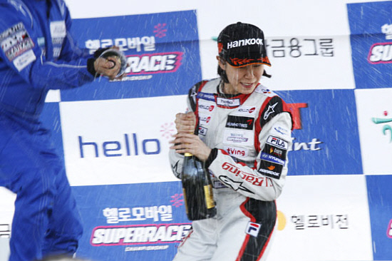 ○...미녀 드라이버 이화선(CJ레이싱)이 3위 입상의 기쁨을 만끽했다. 이화선은 아직 경주차 세팅이 부족해 주종목 N9000이 아닌 올시즌 신설종목 한국타이어 벤투스 클래스에 출전해 입상한 뒤 시상대에서 샴페인 세례를 흠뻑 받으며 기쁨을 감추지 못했다.