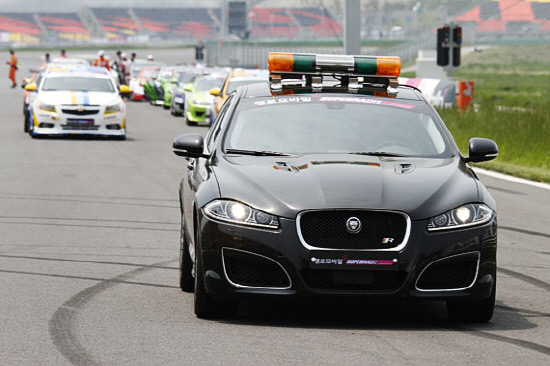 ○...이번 대회에선 세이프티 카로 나선 재규어XF R 차량이 관중들의 시선을 주목시켰다. 재규어XF R은 V8 5.0 가솔린엔진에 배기량 5000cc,510 마력으로 뛰어난 성능을 자랑하며 최고 250km/h의 속도를 낸다. 제로백은 4.9초로 여느 수퍼카 못지 않은 스펙으로 경주차 못지 않은 인기를 모았다.