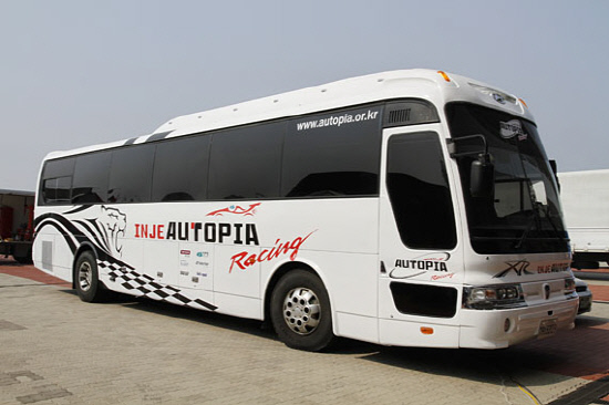 ○...인제오토피아가 카레이싱 전용버스 내부를 공개했다. 영화 속에서 나올 법한 설비들은 최신식 계측 시스템을 자랑한다. 여러 곳에 설치된 카메라를 통행 경기 상황을 실시간으로 지켜보면서 RPM이나 속도 등 모든 경주차들의 상태를 체크할 수 있다. 버스의 반은 밀폐된 공간으로, 문을 열고 들어가면 VIP공간이 나온다. 내부는 테이블과 소파가 있는 모던한 분위기에 최신식 텔레비전까지 갖추어져 있어 편하게 휴식을 취할 수 있다.