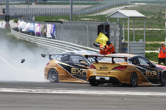 유경욱(EXR팀106)의 제네시스 쿠페(이하 젠쿱)가 엑스타GT 클래스 최강자 쉐보레 크루즈를 무너뜨렸다.