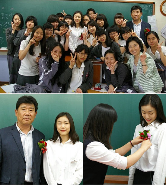 '교생 선생님'으로 변신한 김연아가 스승의 날을 맞아 카네이션을 선물 받았다.