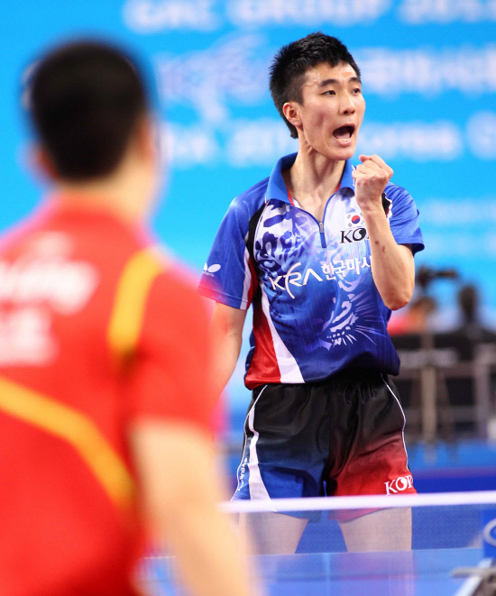 ◇한국마사회컵 코리아오픈에서 세계 1위 마롱을 꺾은 이상수가 뜨겁게 포효하고 있다. 사진제공=월간탁구 안성호 기자