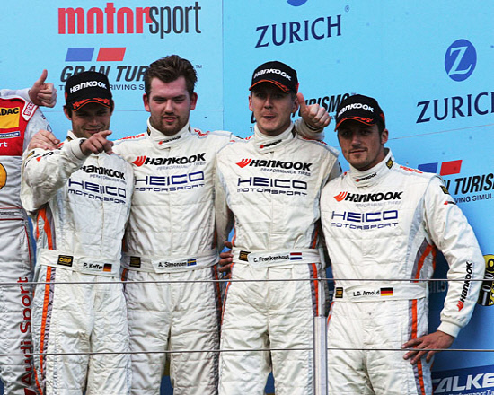한국타이어가 유럽 카레이싱 심장부 독일의 장거리 레이스에서 14초를 남기고 짜릿한 역전레이스로 시상대에 올랐다.