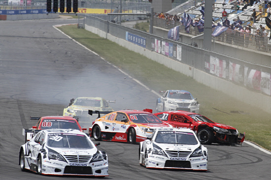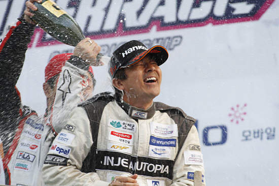 일본인 드라이버 타카유키 아오키(인제오토피아)가 타 선수들의 추돌 이변 속에 슈퍼레이스 2라운드의 우승컵을 들어올렸다.