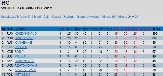 '러시아 2인자' 콘다코바가 세계랭킹 1위에 올라 있다. 베이징올림픽 금메달리스트이자 세계선수권자인 '부동의 세계 1위' 에브게니아 카나에바(2위)가 동료 콘다코바에 비해 랭킹이 낮은 이유는 참가횟수탓이다. 카나에바는 페사로 대회, 소피아 대회 등 올시즌 2개 대회에만 출전했다.