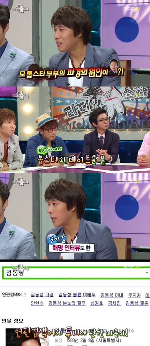김동성은 지난 30일 방송된 MBC '황금어장-라디오스타'에 출연해 과거 톱스타 부부 파경 원인으로 지목된 루머에 대해 입을 열었다.