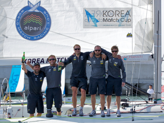'디펜딩챔피언' 비욘 한센 스키퍼(스웨덴)가 월드매치레이싱투어(WMRT) 2012년 코리아매치컵 세계요트대회에서 2연패를 차지했다.