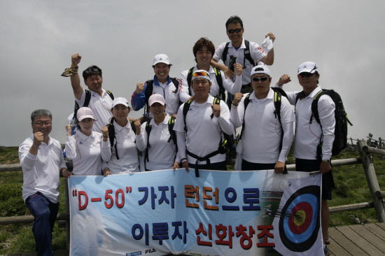 대표팀은 7일 오전 한라산 등정에 나섰다. 런던 올림픽 성공을 다짐하는 결의를 다지고자했다. 오전 8시 반부터 시작한 오늘 훈련은 제주 한라산 성판악을 출발하여 백록담에 오른뒤 관음사를 통해 하산하는 코스로 이루어졌다. 한국 스포츠의 효자 종목인 양궁에 대한 국민들의 기대와 성원에 부응하고자 런던올림픽 필승을 다짐했다. 또 자기 자신을 되돌아보고 극복하는 중요한 시간을 가졌다.