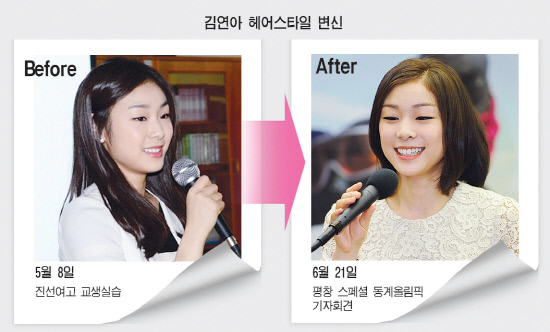 김연아(22·고려대)가 그동안 고수해온 긴 머리를 싹둑 잘랐다. 21일 서울 프레스센터에서 열린 2013년 평창동계스페셜올림픽 성공개최를 위한 국제스페셜올림픽위원회(SOI) 방한 기자회견에 참석했다. 지난 5월 초 교생실습 공개수업 때만 해도 기존의 긴머리를 유지했던 김연아는 이날 어깨에 닿을락말락한 단발 헤어스타일을 선보였다. 올여름 윤은혜, 함은정, 이민정 등 내로라하는 연예스타들의 변신으로 입증된 최신 트렌드, '단발스타' 대열에 가세했다. 아이보리 레이스 장식의 미니드레스로 여성스러움과 함께 단아한 성숙미를 드러냈다. 김연아가 처음으로 선보인 단발머리에 팬들은 뜨거운 관심을 쏟아내고 있다. 평창스페셜올림픽 홍보대사로 활동 중인 김연아는 이날 SOI 이사이자 '피겨 레전드'인 미셸 콴과 자리를 함께했다. "스페셜올림픽의 성공을 위해 합동 아이스쇼도 할 수 있다"는 뜻을 전했다. 김연아는 "아직 결정되지 않았지만 긍정적으로 생각 중이다. 우상인 미셸 콴과 함께 한다면 잊지 못할 추억이 될 것 같다"며 웃었다.