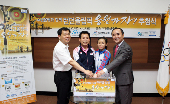 대한체육회 공식후원사이자 런던올림픽 국가대표 선수단 공식후원사인 수협은행이 6일 태릉선수촌 챔피언하우스에서 박종길 태릉선수촌장, 이재헌 수협은행 수석부행장, 여자 펜싱 남현희(베이징올림픽 은메달, 광저우아시안게임 금메달)가 참석한 가운데 '런던올림픽 응원 원정대' 추첨식을 가졌다.