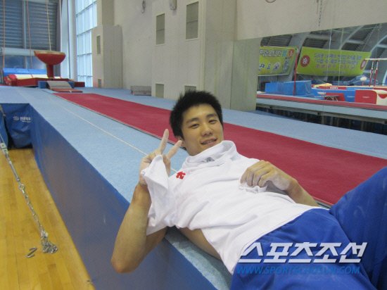 남자체조팀의 대표미남 김지훈(28·서울시청)은 '철봉왕'이다. 2006년 도하아시안게임 동메달, 2007년 프레올림픽 금메달, 2011년 포스코 코리아컵 체조대회 금메달 등 전적이 화려하다. 알 만한 이는 다 아는 '체조 미남'이다. 2008년 베이징올림픽 직후 MBC예능프로그램 '무한도전'에 출연하며 훈훈한 외모로 스포트라이트를 받았다. 하얀 피부, 깔끔한 이목구비에 가지런한 미소가 매력적이다. 지난달 미디어데이, 태릉선수촌에서 지켜본 김지훈의 하루는 유쾌했다. 방송용 카메라를 들고 장난을 치는가 하면, 후배들과 스스럼없이 뒹굴며 장난치는 모습이 소년처럼 풋풋했다. '만년소년' 같은 김지훈에겐 이번이 2번째 올림픽 도전이다. 4년 전 베이징올림픽엔 유원철, 김대은 등 또래들, 양태영 등 선배들과 함께 했다. 주종목인 철봉에서 부진하며 좌절했다. 안마 결선에서 뜻하지 않게 6위에 오르며 선전했지만 첫 올림픽은 쓰라린 기억이다. 다시 4년을 절치부심한 런던올림픽에선 '맏형'으로서 어깨가 무겁다. 양학선(20) 김희훈(21·이상 한체대) 등 올림픽 무대를 첫 경험하는 어린 후배들을 이끌어야 한다.