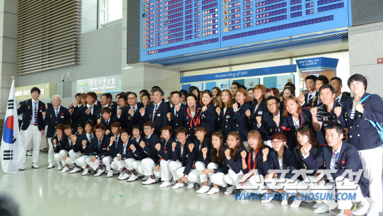 한국선수단 본진은 이날 인천국제공항에서 간단한 출정 행사를 마치고 영국 런던으로 향하는 비행기에 몸을 실었다. 본진은 이기흥 선수단장을 포함한 본부임원 15명, 펜싱 20명, 하키 38명, 태권도8명, 복싱 4명, 역도 8명, 육상 8명 등 선수와 지도자로 구성됐다. 이에 앞서 오후 1시30분에는 본부임원 10명, 사격 20명, 체조 2명 등이 따로 런던으로 출발했다. 한 명의 이탈자나 부상자 없이 예정대로 깔끔하게 출국이 이뤄졌다.