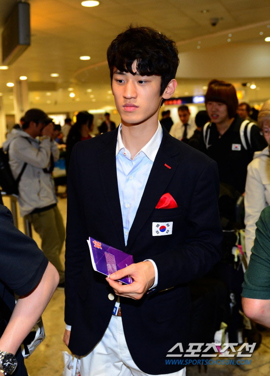 '런던올림픽 선수단 본진이 런던에 입성 했다.' 20일 오후 런던 히드로공항을 통해 대표팀 선수단이 입국 했다. 교민들의 열렬한 환영을 받으며 입국장을 나서고 있는 대표팀 선수들. 남자태권도 58kg급에 출전하는 꽃미남 스타 이대훈이 입국장을 나서고 있다.