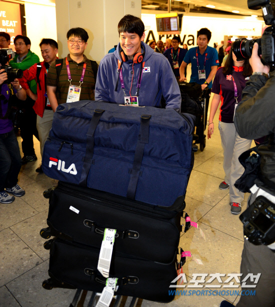 올림픽 2연패를 향해 도전하는 '마린보이' 박태환이 런던에 입성 했다. 프랑스에서 막바지 훈련을 마친 박태환은 21일 런던 히드로공항을 통해 입국 했다. 취재진들의 많은 관심에도 밝은 표정으로 입국장을 나서고 있는 박태환.