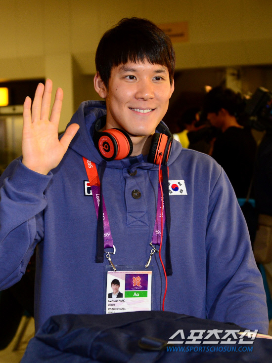 올림픽 2연패를 향해 도전하는 '마린보이' 박태환이 런던에 입성 했다. 프랑스에서 막바지 훈련을 마친 박태환은 21일 런던 히드로공항을 통해 입국 했다. 취재진을 향해 밝은 표정으로 인사를 하고 있는 박태환.