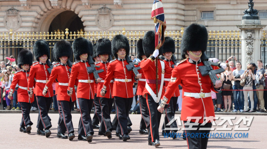 제30회 2012 런던올림픽 D-6일인 21일 런던 버킹검궁앞에서 열린 왕실근위병 교대식이 많은 시민과 관광객이 지켜보는 가운데 열리고 있다.20120719 런던=올림픽사진공동취재단 g