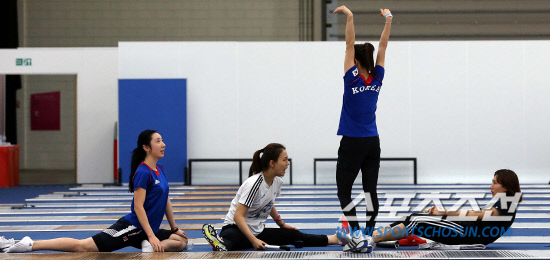 런던올림픽에서 첫 금메달 사냥을 위해 결전지에 도착한 '펜싱 여제' 남현희(31, 성남시청)등 펜싱국가 대표팀이 21일(현지시간) 영국 런던 엑셀(Excel)경기장에서 마지막 적응훈련을 하고 있다.