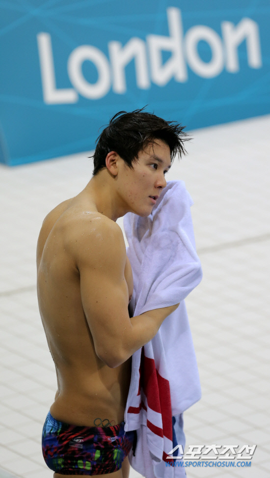 수영 남자 자유형 400m 금메달 2연패에 도전하는 박태환이 22일 오전(현지시각) 런던 올림픽파크 아쿠아틱 센터에서 훈련을 마친 박태환이 몸을 닦고 있다. 20120722런던=올림픽사진공동취재단h