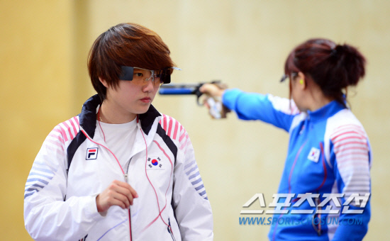 사격 김장미 선수가 22일 오전 로얄아틸러리배럭(The Royal Artillery Barracks)에서 열린 대표팀 훈련을 마치고 사로에서 나오고 있다. 20120722. 런던=올림픽사진공동취재단e