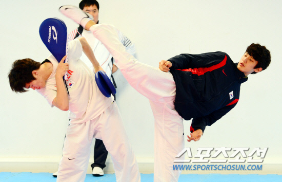 김세혁 감독이 이끄는 2012 런던 올림픽 태권도 대표팀이 22일 오전(현지시간) 한국 선수단 훈련캠프인 브루넬 대학에서 훈련을 하고 있다.남자 -58kg급에 출전하는 이대훈 선수가 훈련에 매진하고 있다.20120722런던=올림픽사진공동취재단