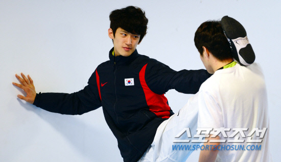 김세혁 감독이 이끄는 2012 런던 올림픽 태권도 대표팀이 22일 오전(현지시간) 한국 선수단 훈련캠프인 브루넬 대학에서 훈련을 하고 있다.남자 -58kg급에 출전하는 이대훈 선수가 스트레칭을 하며 몸을 풀고 있다.20120722런던=올림픽사진공동취재단
