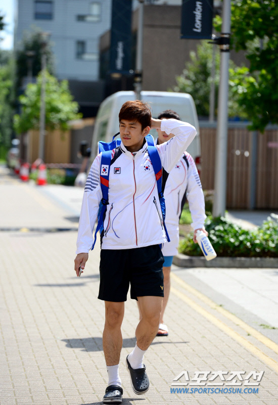 22일 배드민턴 국가대표 선수들이 런던올림픽 훈련 캠프가 차려진 브루넬대학 근처 실내연습장에서 훈련을 가졌다. 이용대가 훈련장으로 나서고 있다.