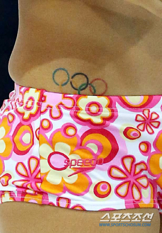 수영 금메달 2연패에 도전하는 박태환이 23일 오전(현지시각) 런던 올림픽파크 아쿠아틱 센터에서 훈련하고 있는 가운데 수영복속에 수놓은 오륜기가 눈길을 끈다. 20120723 런던=올림픽사진공동취재단 i