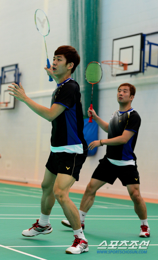 23일 런던올림픽 훈련 캠프가 차려진 브루넬대학에서 국가대표 선수들이 훈련을 가졌다. 배드민턴 대표팀이 브루넬대학 근처 실내 연습장에서 훈련을 했다. 남자복식에 출전하는 이용대-정재성 조가 동료들과 함께 훈련에 임하고 있다.
