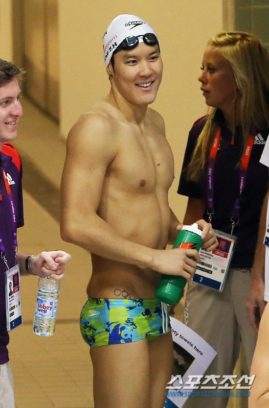 수영 금메달 2연패에 도전하는 박태환이 24일 오전(현지시각) 런던 올림픽파크 아쿠아틱 센터에서 훈련을 마친 뒤 밝은 표정을 짓고 있다. 20120724 런던=올림픽사진공동취재단m
