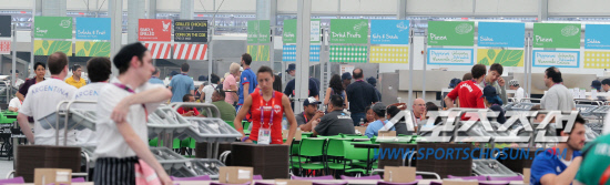 런던올림픽 개막을 사흘 앞둔 24일 오후 각국의 선수와 임원 등이 런던 스트라트포드 올림픽 선수촌 내 식당에서 다양한 종류의 음식을 즐기고 있다.
