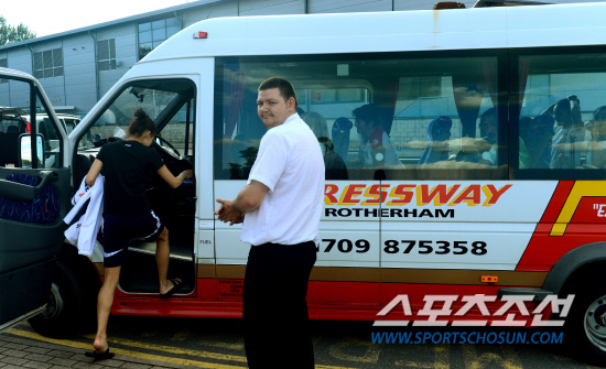 '체조요정' 손연재가 24일(현지 시각) 셰필드에 마련된 훈련장에서 오후 훈련을 마친 뒤 차량을 이용해 숙소로 돌아가고 있다.