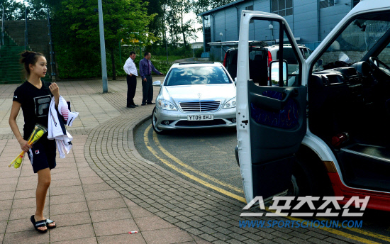 '체조요정' 손연재가 24일(현지 시각) 셰필드에 마련된 훈련장에서 오후 훈련을 마친 뒤 차량을 이용해 숙소로 돌아가고 있다.