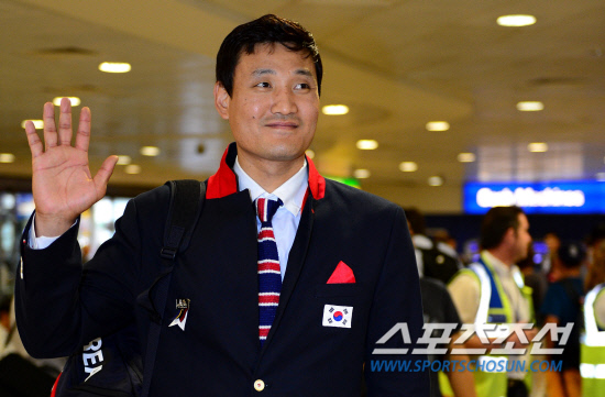 [런던포토] '런던 입성' 윤경신, 선수단 기수의 늠름한 모습