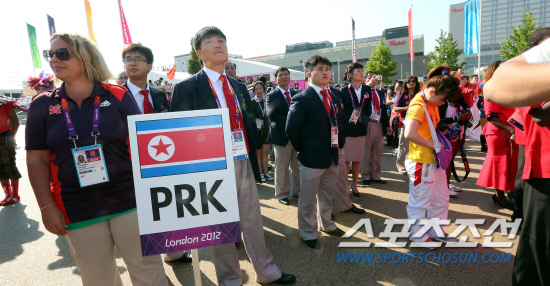 제30회 런던 올림픽에 출전한 북한 선수단이 25일 오전(현지시간) 올림픽 파크 내의 선수촌에서 김병식 체육성 부상이 단장을 맡은 북한 선수단은 중국, 케냐, 사모아, 수리남과 함께 공동 입촌식을 치렀다.